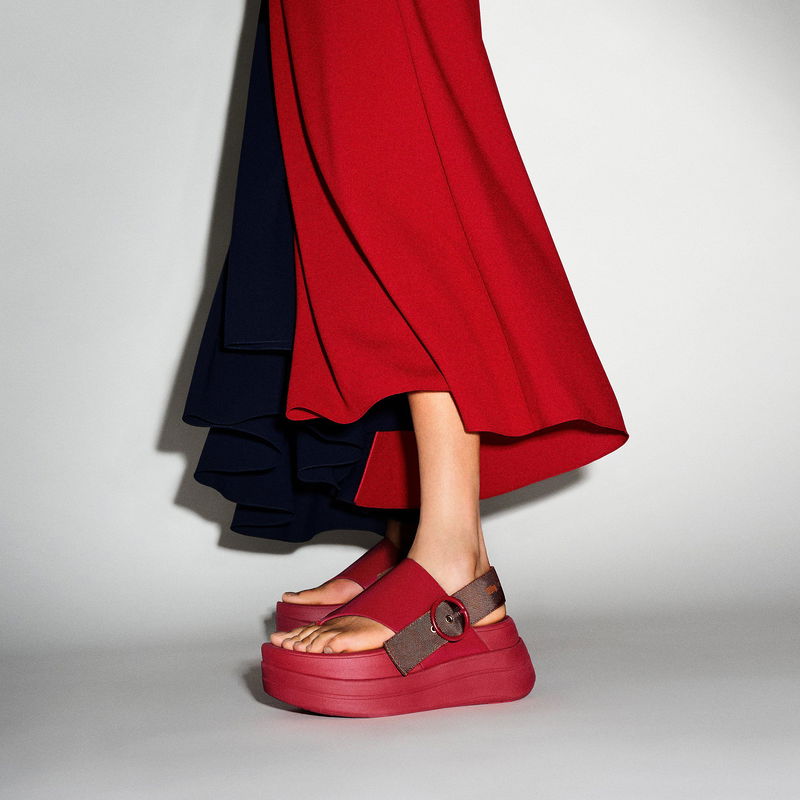 F-MODE STACK X ROKSANDA Leather/Webbing Back-Strap Toe-Post Sandals Leather/Nylon