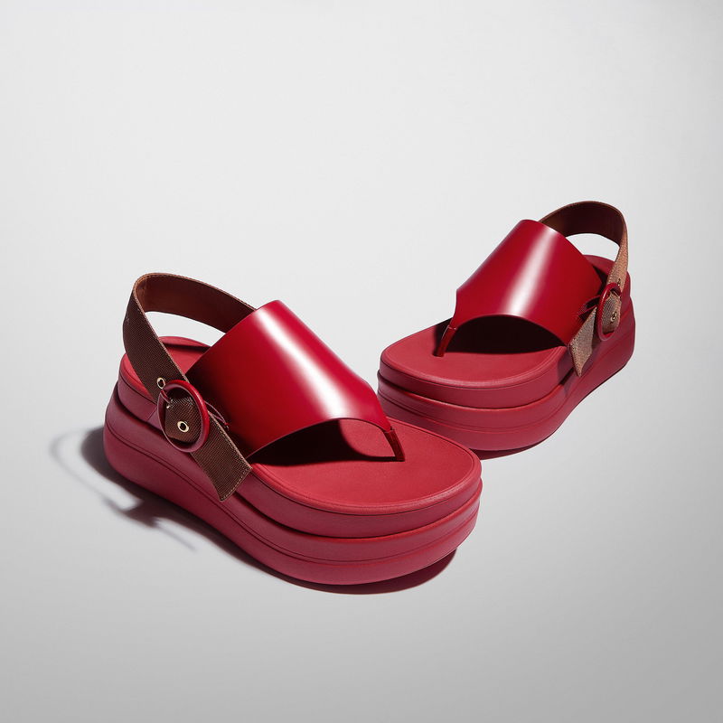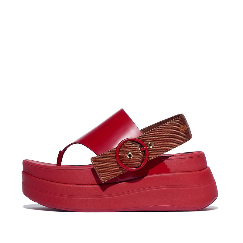 F-Mode Leather Flatform Back-Strap Toe-Post Sandals