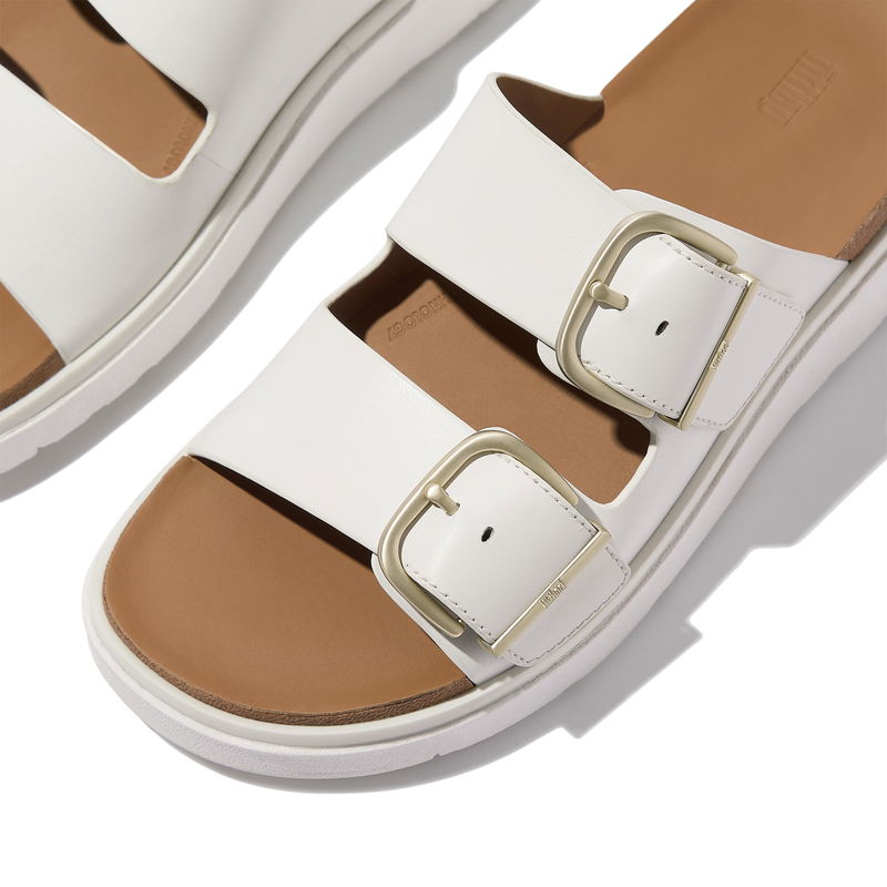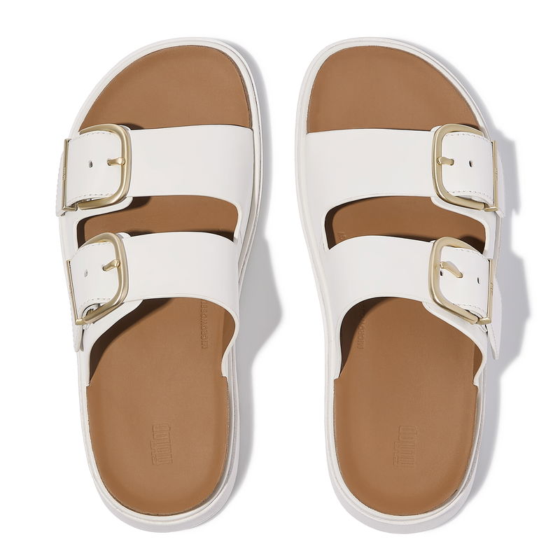 GEN-FF Buckle Metallic Tumbled-Leather Two-Bar Slides