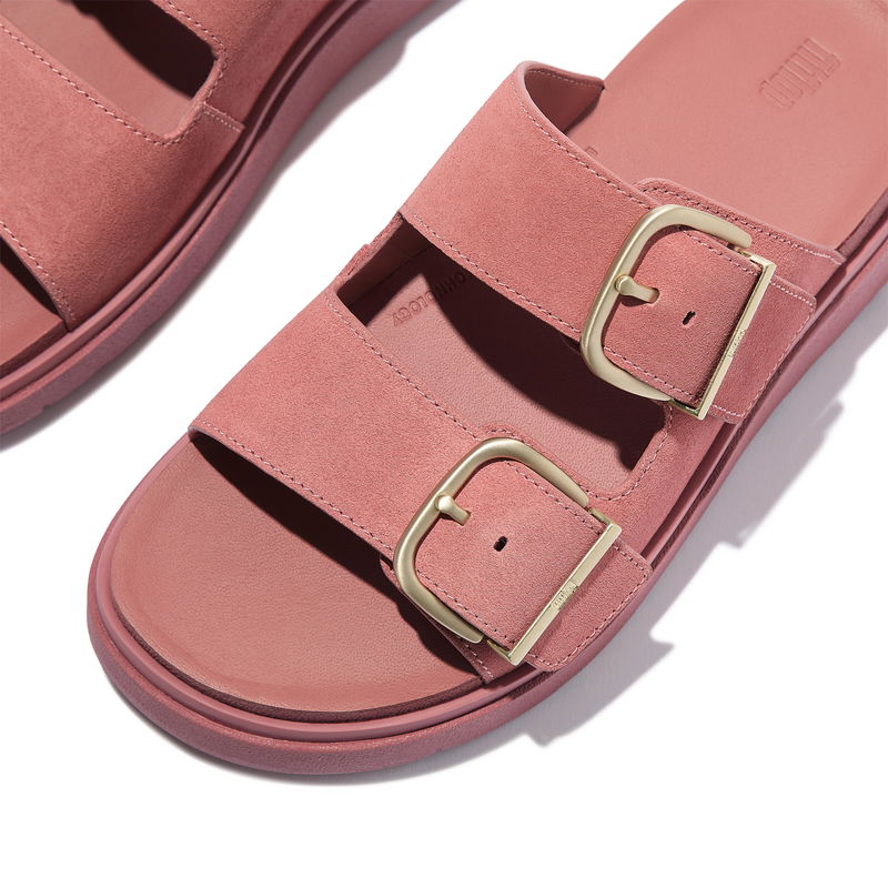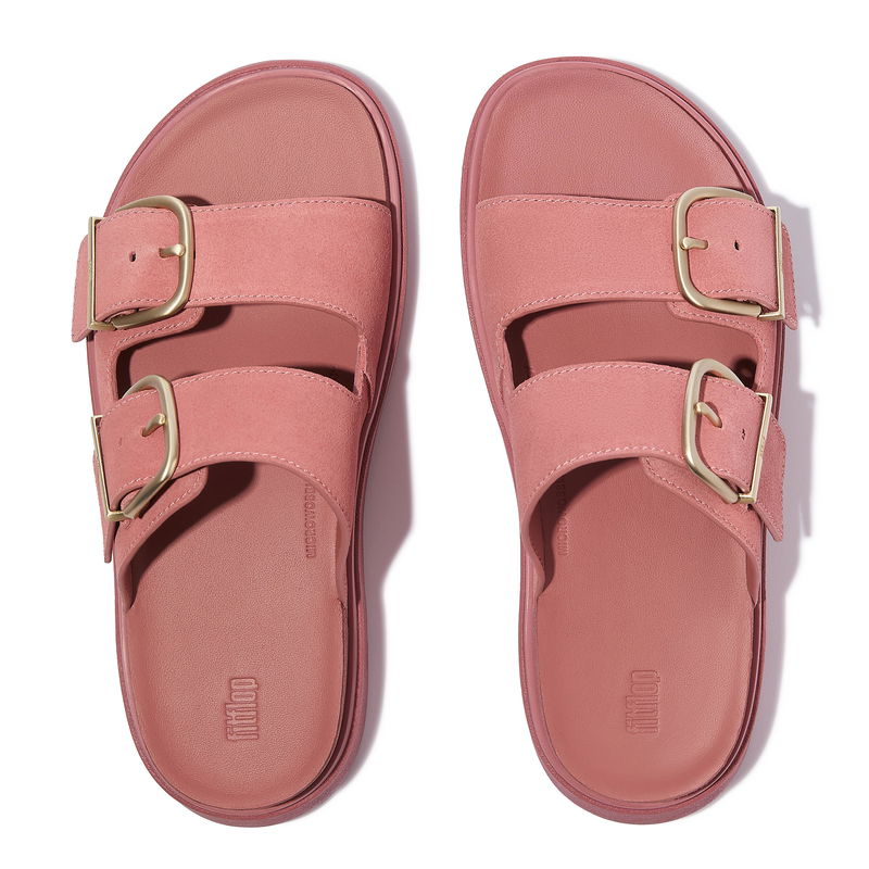 GEN-FF Buckle Metallic Tumbled-Leather Two-Bar Slides
