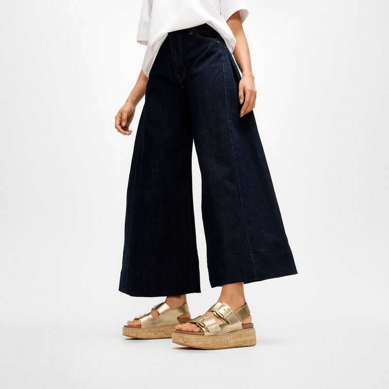 Max Buckle Denim Back-Strap Sandals Polyester-Cotton