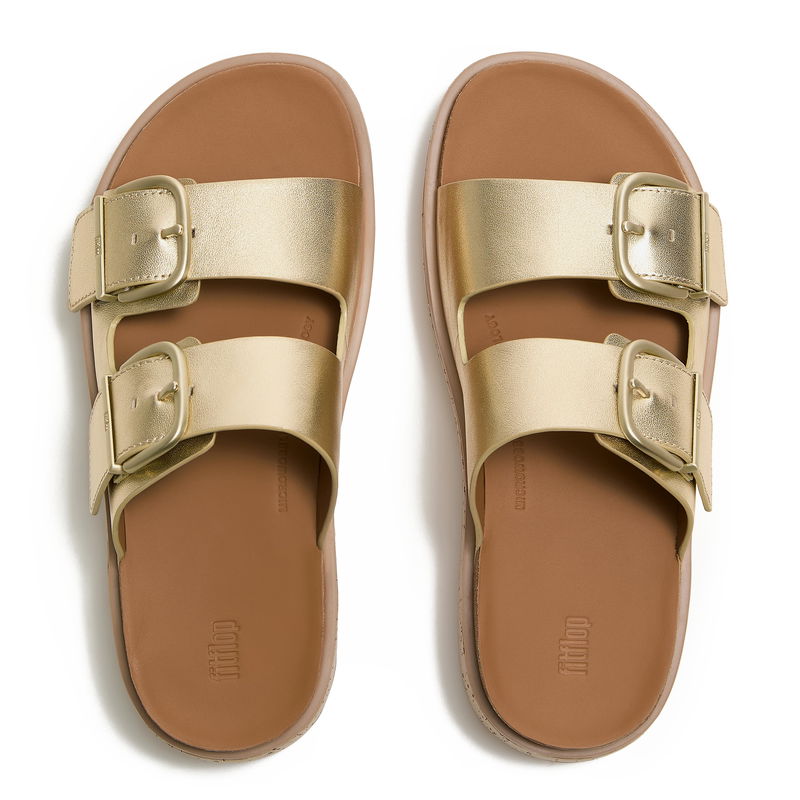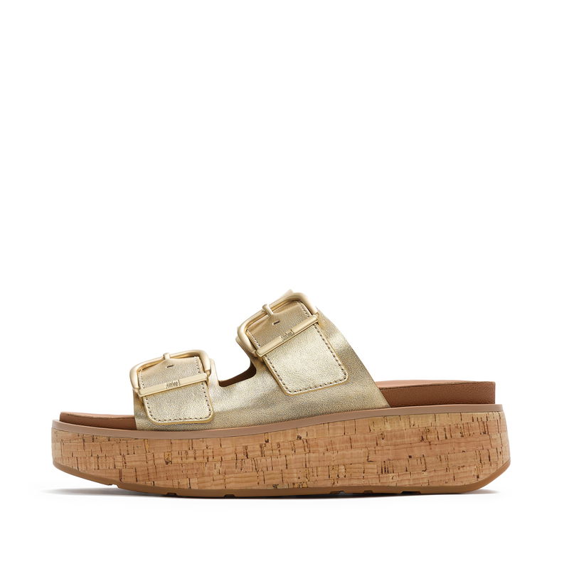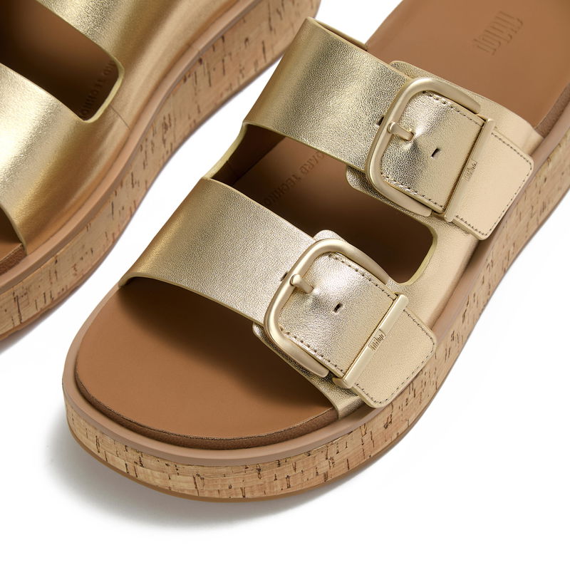 GEN-FF Max Buckle Metallic-Leather/Cork Two-Bar Slides