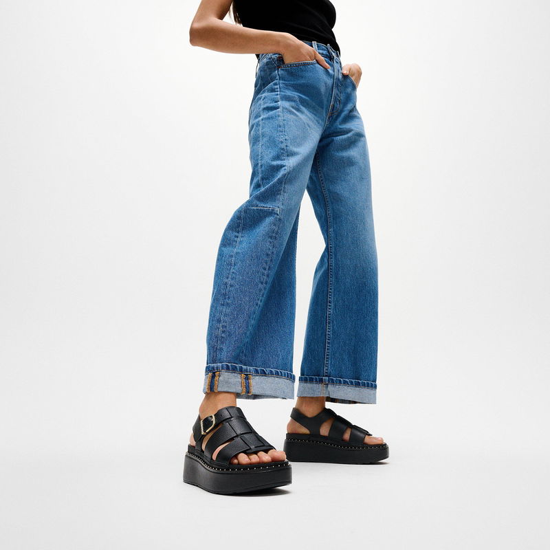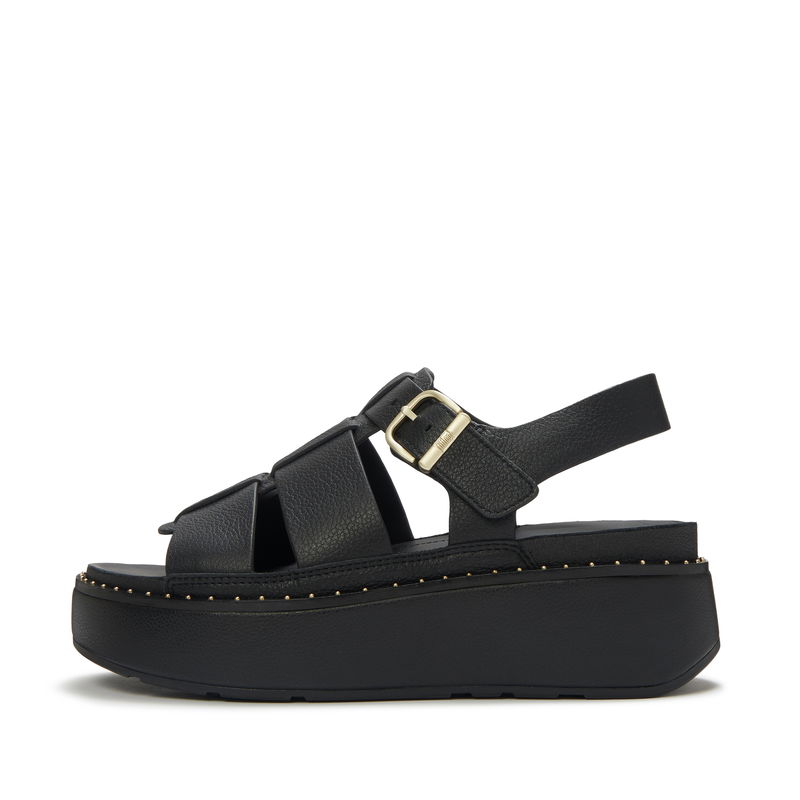 F-MODE Leather Flatform Fisherman Sandals Leather/Nylon/Spandex Fabric