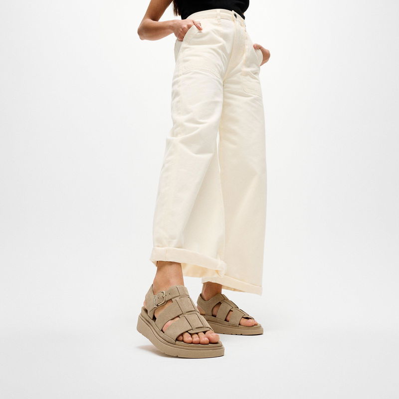 F-MODE Leather Flatform Fisherman Sandals Leather/Nylon/Spandex Fabric