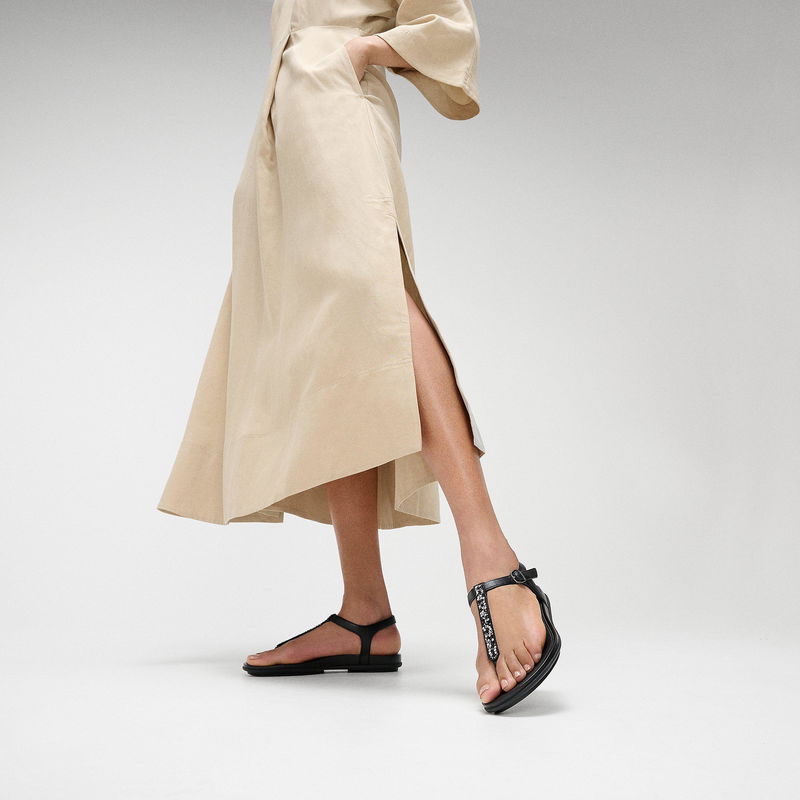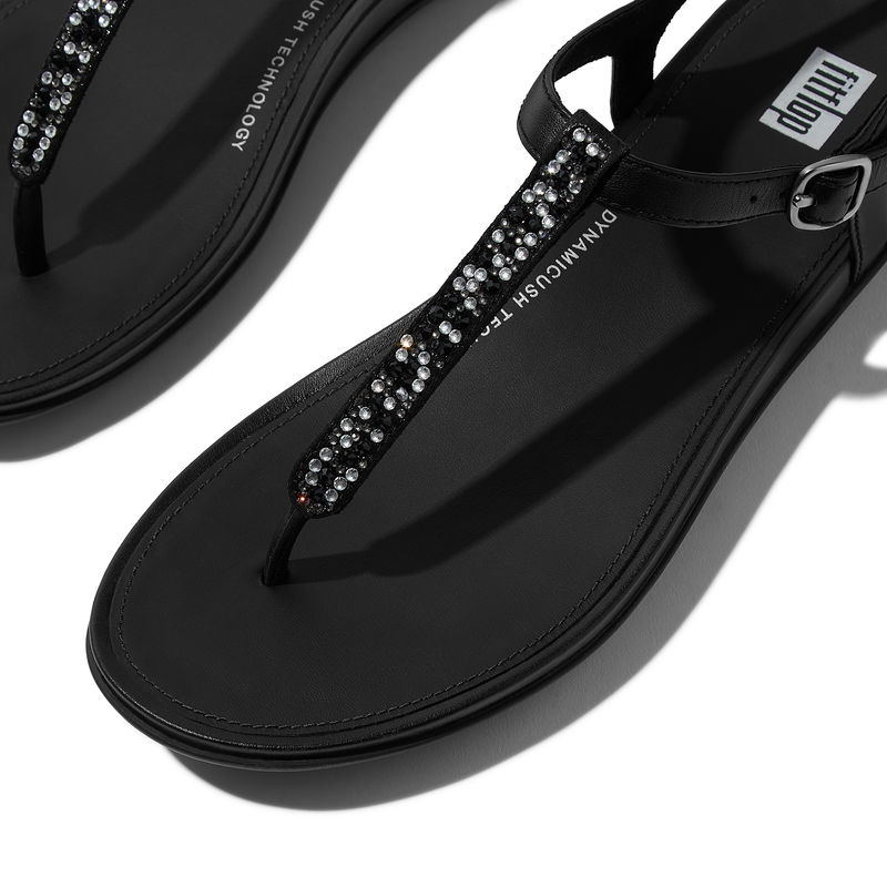 GRACIE Crystal-Mix Leather T-Bar Sandals Leather Crystal Covered Microfibre