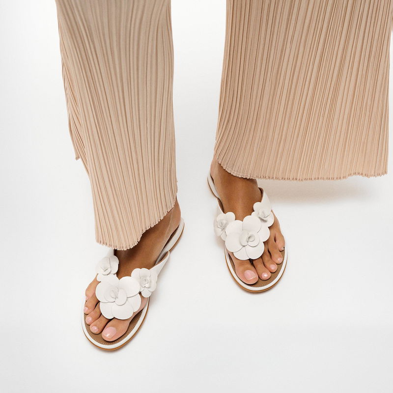 Flower Leather Flip-Flops