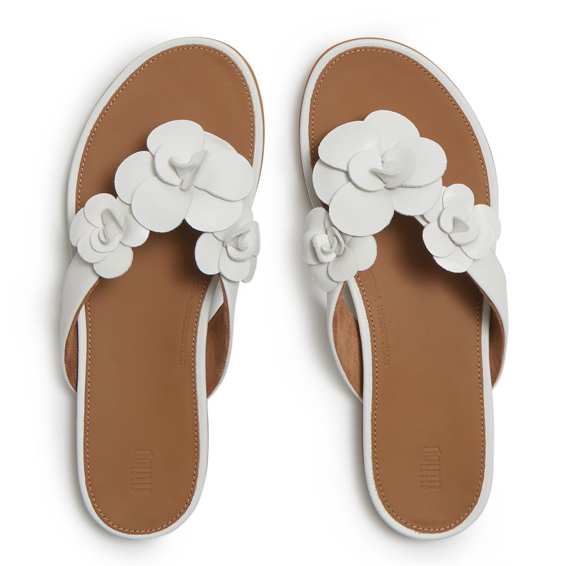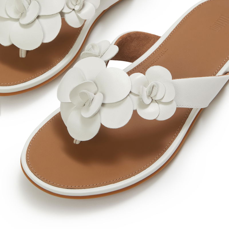 GRACIE Flower Leather Flip-Flops
