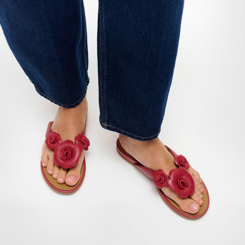 An icon gets an update. A staple style within our collection, the Gracie flip-flops are given an ultra-feminine twist for the new season. Crafted entirely from buttery-smooth leather, from the streamlined sole to the slender front strap, this new take on the style is adorned with blooms across the front (those petals are crafted from pure leather, too).