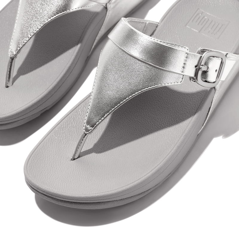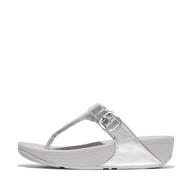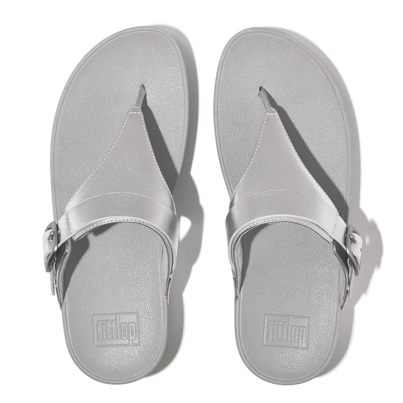 LULU Adjustable-Buckle Metallic-Leather Toe-Post Sandals