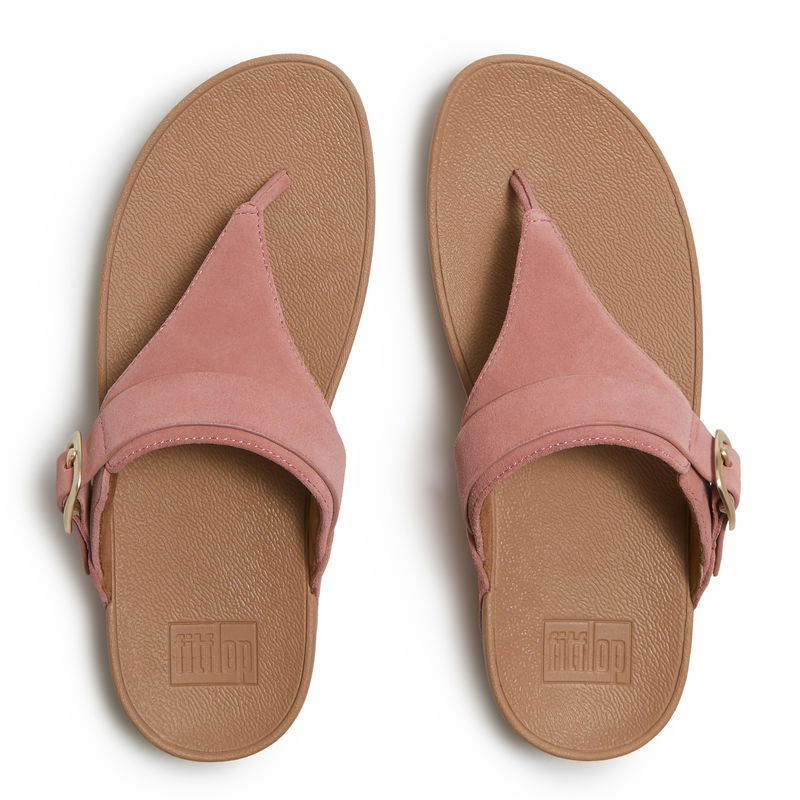 Lulu Crystal-Buckle Leather Toe-Post Sandals
