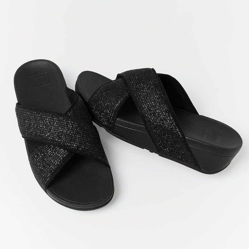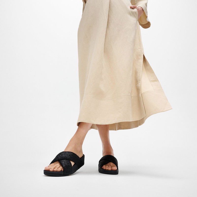 LULU Crinkled-Shimmer Cross Slides Polyester-Cotton