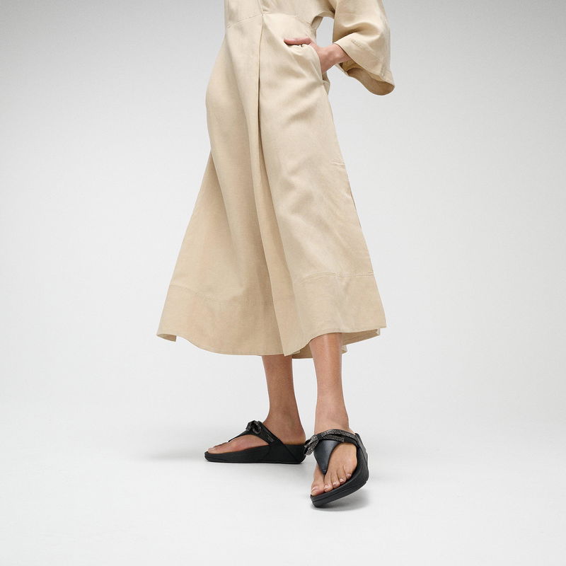 Lulu Crystal-Buckle Leather Toe-Post Sandals