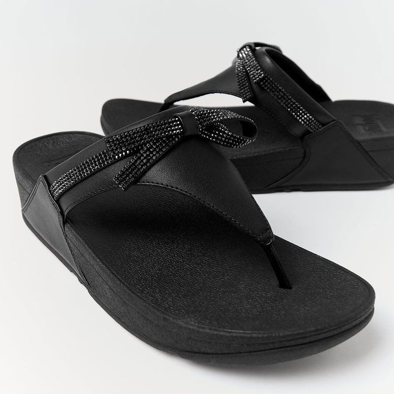 LULU Glitz-Bow Leather Toe-Post Sandals