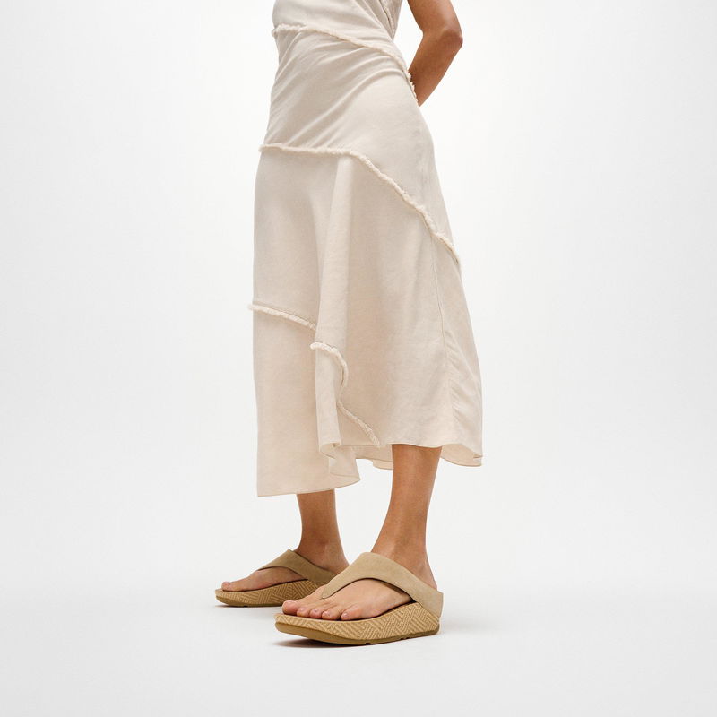 LULU Lux Graphic-Weave Suede Toe-Post Sandals