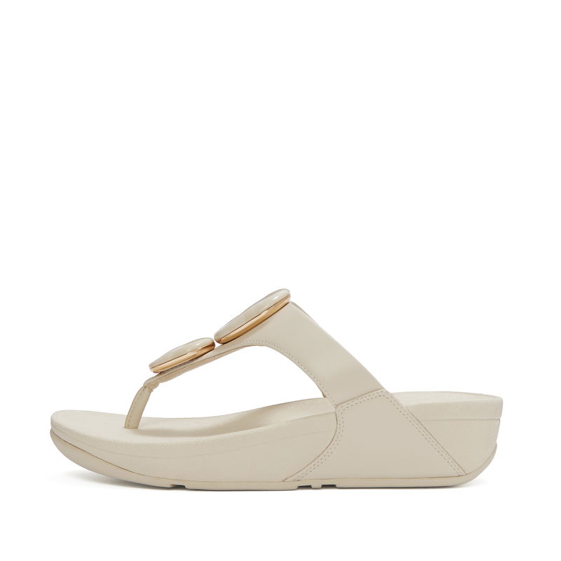 Lulu Resin-Buckle Leather Toe-Post Sandals