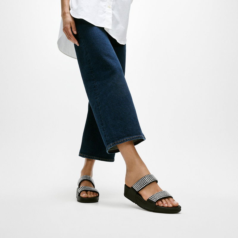 LULU Maxi-Crystal Two-Bar Slides Leather/Poly