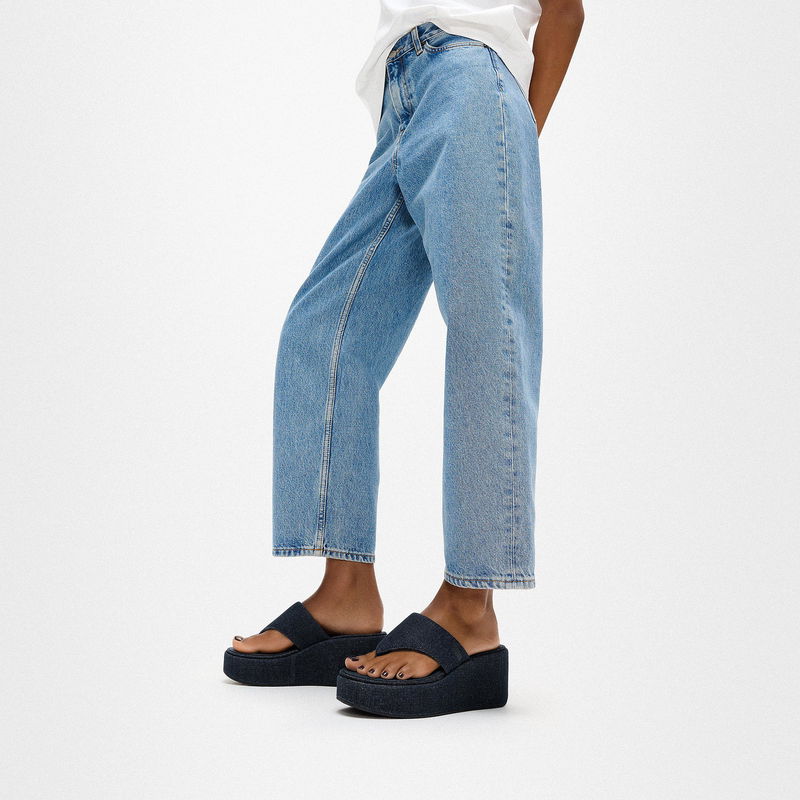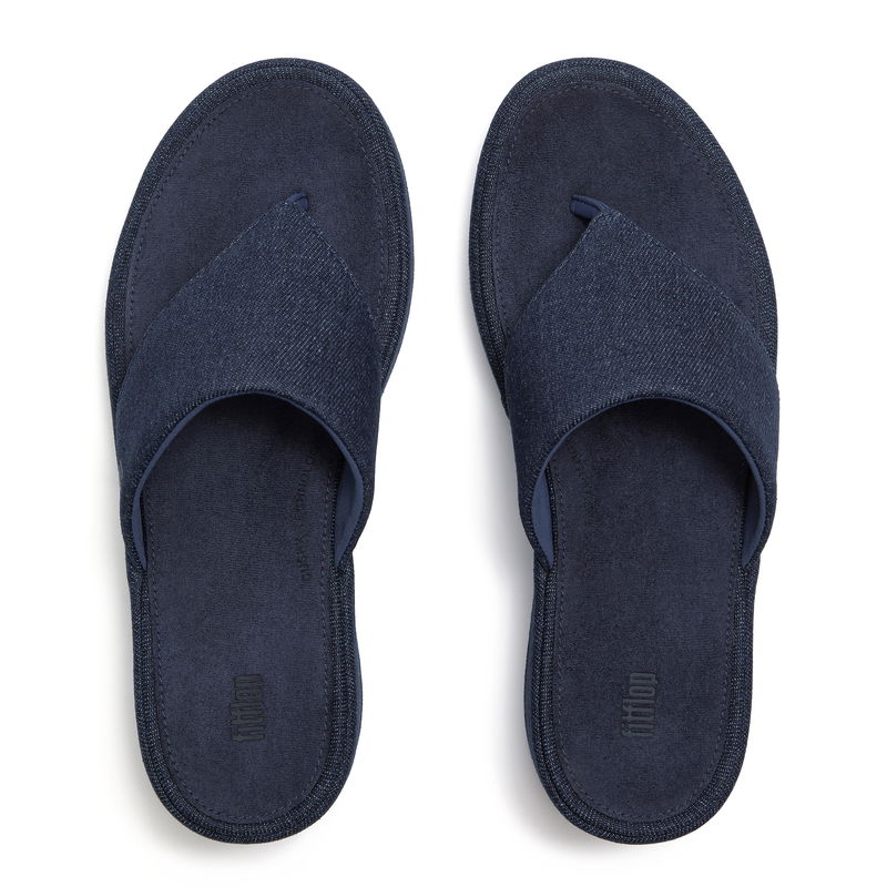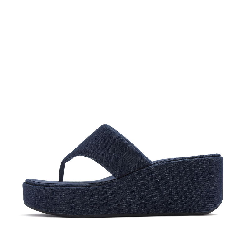 PLATFFORMS Denim Wedge Toe-Post Sandals Polyester-Cotton