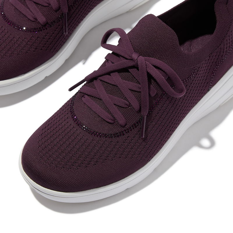 SUPER-Q Crystal-Trim Knit Slip-On Laced Trainers Polyester