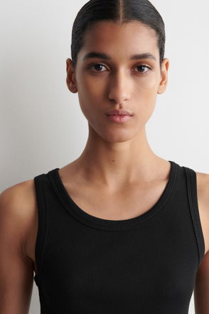 FLORE FLORE cotton tank. Round-neck, seam through back, ribbed trims. Slips on.