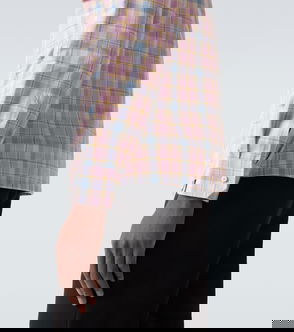 Italian checked fabric with slightly draped, soft-hand feel. Standard fit shirt block. Curved hem. Clean, simple design to focus on fabrication. Garment washed to add softness and a more lived-in feel- Corozo nut buttons.