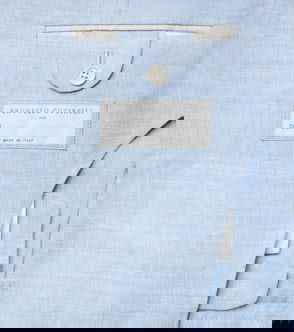 A blazer with a relaxed and soft tailoring style Summery and light cotton linen fabric with a soft yet dry handle and subtle texture Corozo nut buttons Garment dyed for depth and character of colour. Single breasted, 2 button close at centre, 3 button at cuffs with notch lapels. Patch pockets at front on either side and internal twin pockets. Centre back vent.