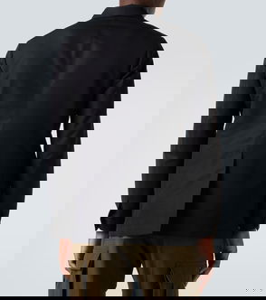 The Field Jacket with chest and lower bellow patch pockets. The centre front has a metal zip closure which is covered by a placket with concealed snap pockets apart from the top two at the collar which are visible. The snaps are brass colour coated in a spray finish to match the outer which give them a subtly distressed look. The funnel collar conceals a self fabric hood which has a cord adjuster. The hood is hidden in collar by a visible brass colour zip. The jacket is unlined with neat bound edges, visible waist adjuster channel, cords and lower large patch pockets. The hem can be adjusted by a cord channel.