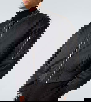 The Jersey Bomber is a great piece for layering or wearing as a jacket for summer. It is based on a bomber block but has a straight hem with round drawcord with metal ends. The fabric is a loopback jersey with welt pockets at the front.