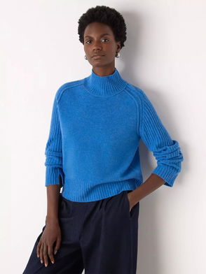 This jumper is an updated version of Folk Clothing's style. It has a cosy funnel neck and a dropped shoulder. Knitted from extra fine merino wool with a super soft finish. The tuck stitch knit creates a linear texture. Finished with a reverse seam yoke detail at the back.