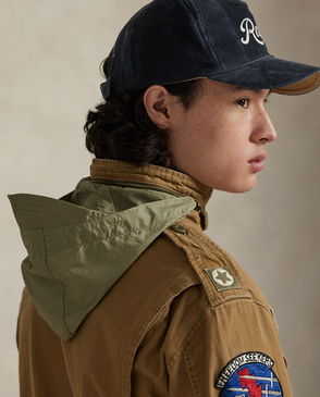 Simple two pocket workers jacket with concealed placket in a showerproof Italian Cotton Mix.