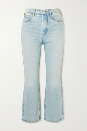 Bootcut jeans, Acid-wash, Denim, Patchwork, Distressed, Logo-appliquéd, Belt loops, High-rise cut, Multipockets, Button and concealed zip fastening at front, Mid-weight, non-stretchy fabric.
