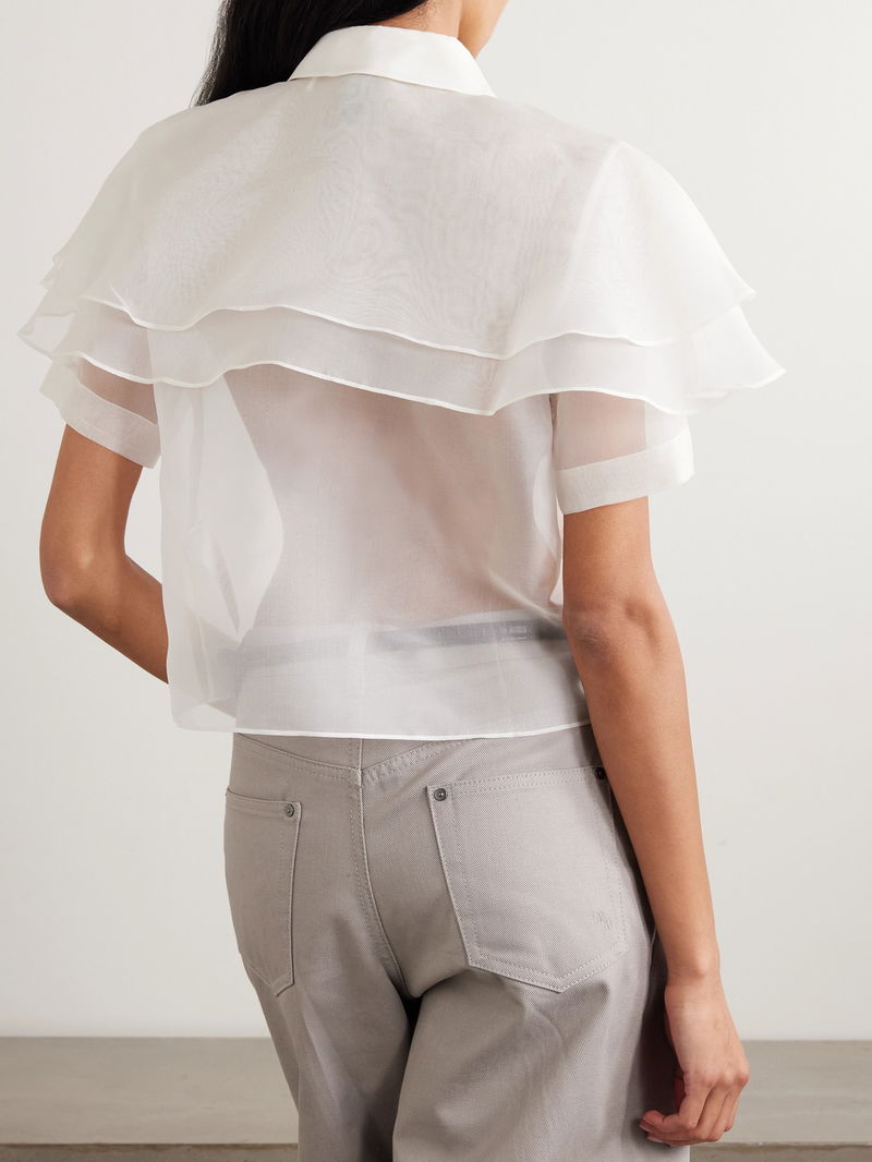 FRAME's blouse comes with a fluttery cape-effect panel that you can detach depending on your outfit. It's made from silk-organza with a slightly sheer finish and fastens with a neat row of lustrous buttons. Underpin yours with a tonal bralette or camisole.