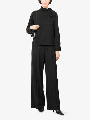 Frame’s understated attitude is applied to timeless wardrobe staples such as this black shirt from the label’s latest collection. The boxy style is expertly crafted from silk crepe de chine in a loose-fit silhouette, and finished with a camp collar and flap pockets. Wear it with black jeans and ankle boots for an effortless laid-back edit.