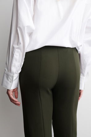 Cotton twill trousers.· Belt loops· Zip-fly· Flap pockets at outseams · Four-pocket styling.