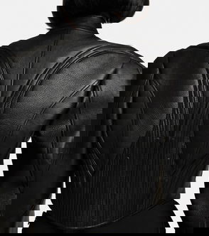 Pebble-grained lambskin jacket. · Shawl lapel · Button closure· Pleats at cropped hem· Detachable cinch belt · Gathering at padded shoulders· Three-button surgeon's cuffs· Full viscose-blend twill lining.