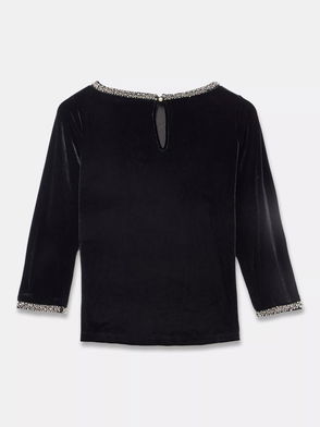 Top, Crushed-velvet, Concealed hook and zip fastening at back, Mid-weight, stretchy fabric, Dry clean, Imported, Searching for the ultimate designer gifts for her this festive season?