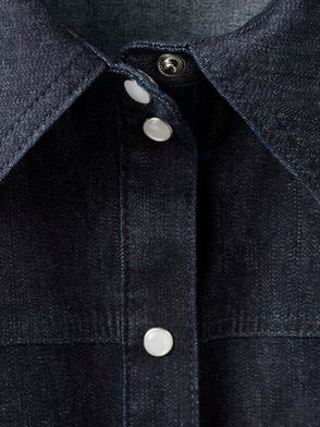 FRAME's shirt has a dramatic high-low hem that emphasizes its relaxed fit. Cut from dark-blue denim, it's topped with a pair of chest pockets and fastens with logo-etched snaps.