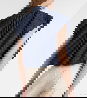 Frame creates iconic designs using fair manufacturing practices and sustainably sourced materials. This denim vest boasts a flattering V-neckline, a buttoned front, and wide armholes for a relaxed fit.