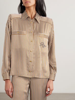 Shirt, Silk-satin, Gathered sleeves, Buttoned cuffs, Concealed button fastenings through front, Mid-weight, non-stretchy fabric.
