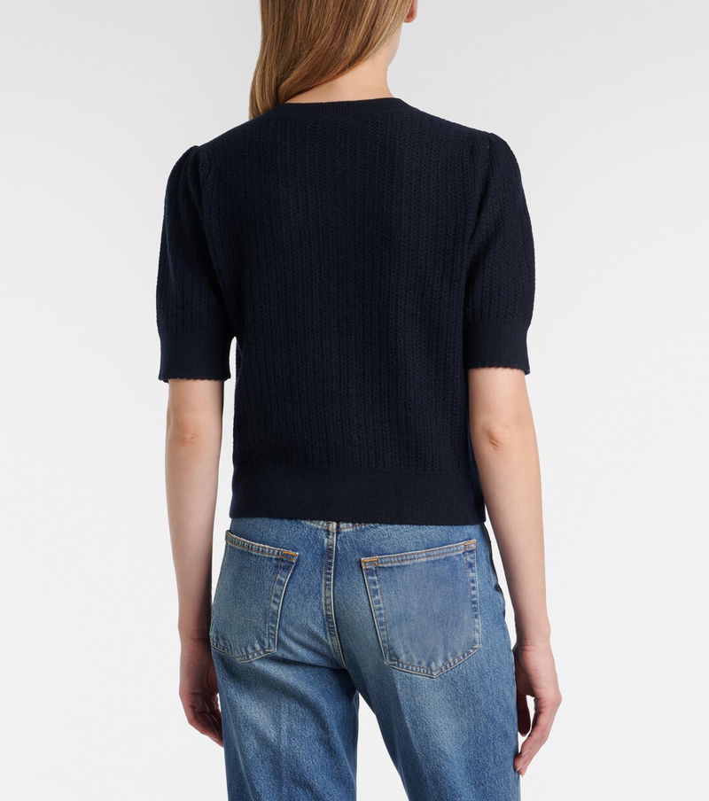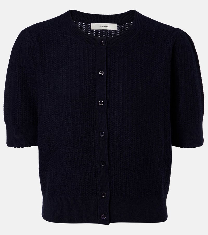 Frame creates iconic designs using fair manufacturing practices and sustainably sourced materials. The Ladder cardigan is knitted from soft cashmere to a short-sleeved silhouette, showcasing a classic pointelle finish.