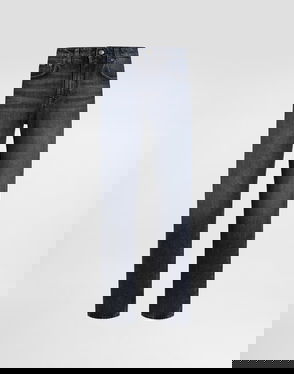 Boyfriend jeans, Faded, Denim, Mid-rise cut, Five pockets, Button and concealed zip fastening at side, Mid-weight, slightly stretchy fabric.