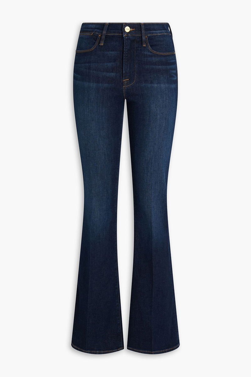 Flared jeans, Faded, Denim, Belt loops, High-rise cut, Five pockets, Button and concealed zip fastening at front, Mid-weight, slightly stretchy fabric.