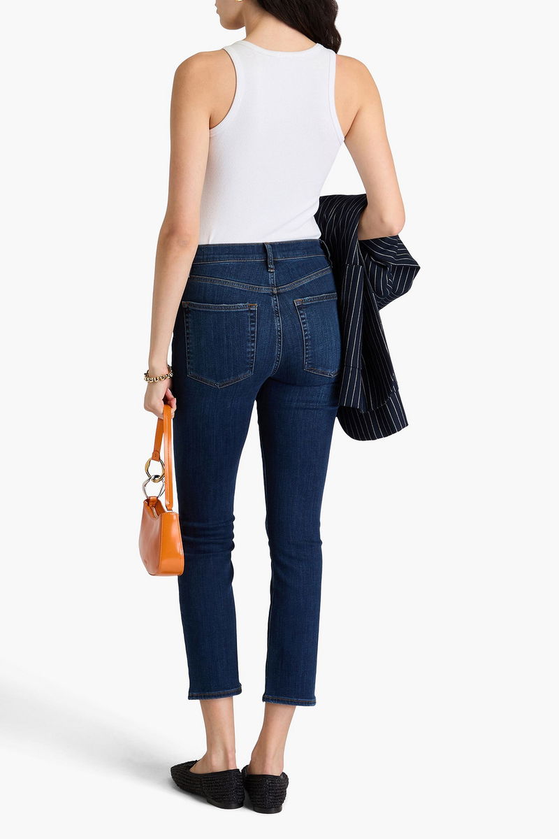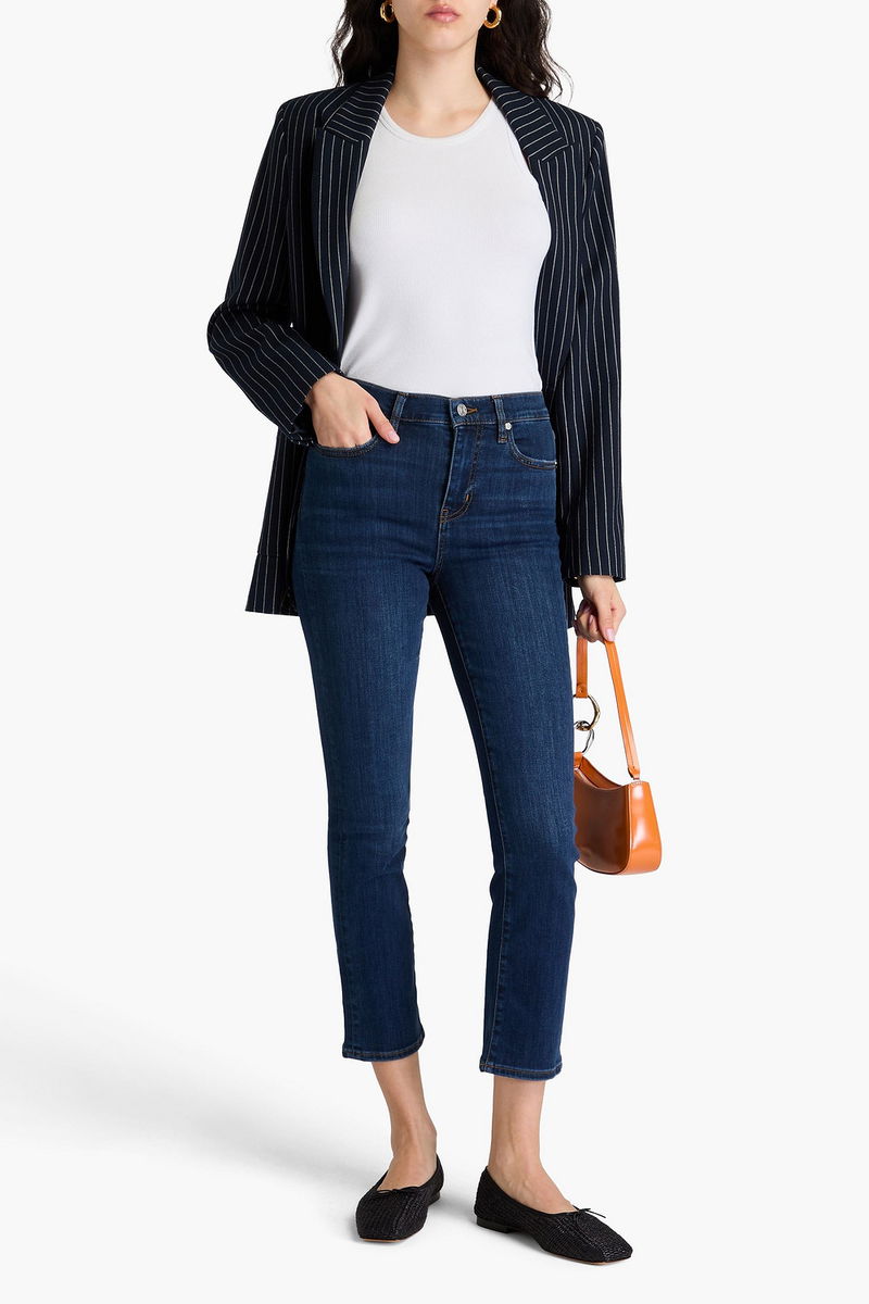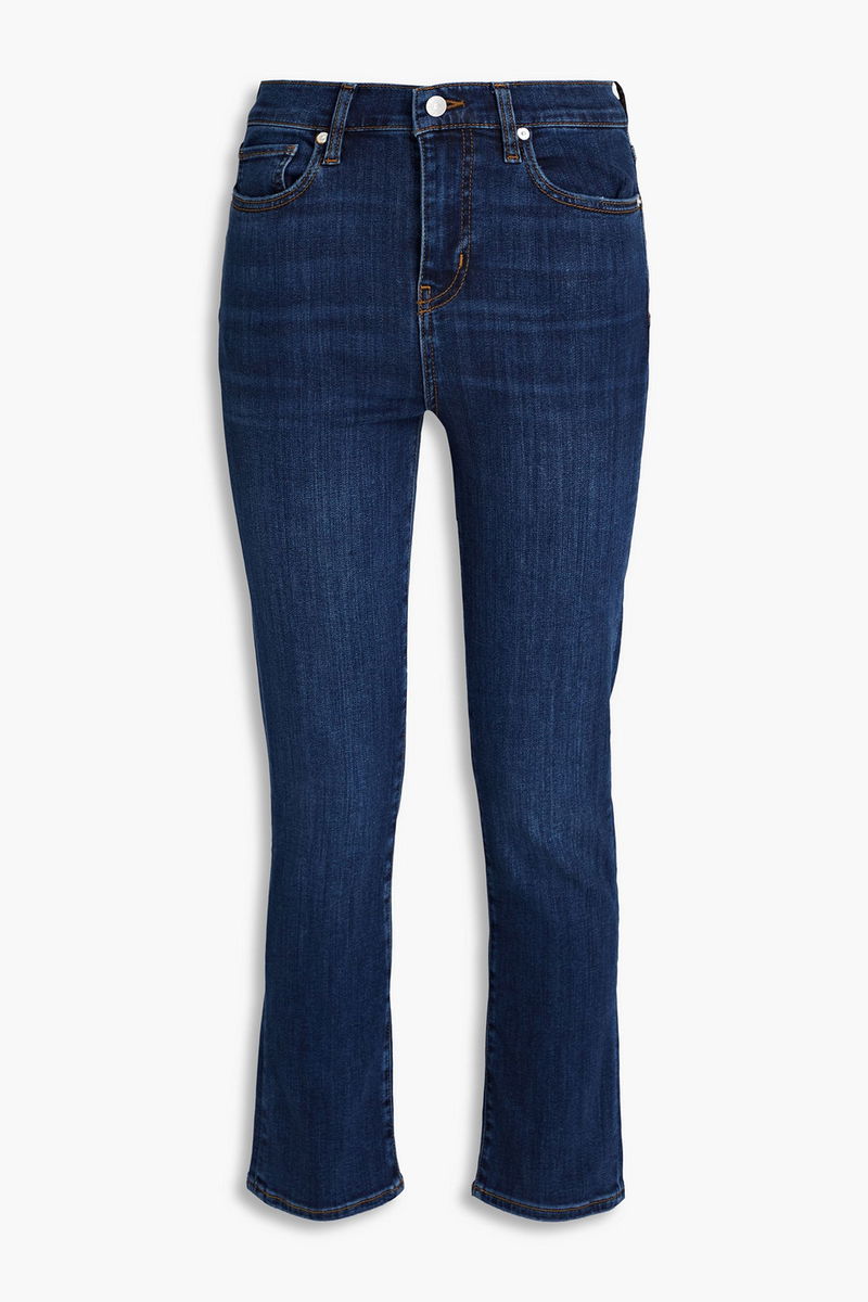 Straight-leg jeans, Faded, Denim, Cropped, Belt loops, High-rise cut, Five pockets, Button and concealed zip fastening at front, Mid-weight, stretchy fabric.