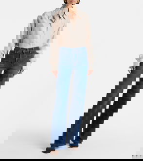 Slim-fit wide-leg stretch denim jeans. Fading throughout. · High-rise · Belt loops· Five-pocket styling· Zip-fly· Logo-engraved silver-tone hardware· Contrast stitching in tan.