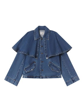 Jacket, Faded, Denim, Distressed trims, Buttoned waist tabs, Buttoned cuffs, Breast pockets, Two side welt pockets, Button fastenings through front, Slightly stretchy fabric, Mid-weight fabric.