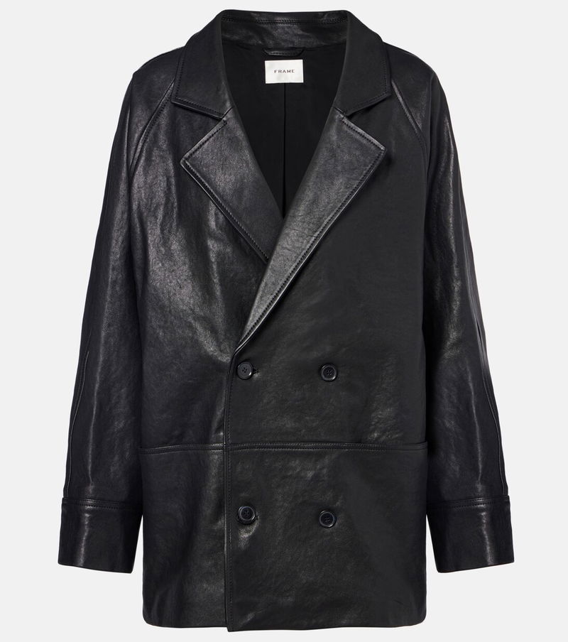 Embrace effortless sophistication with this leather jacket from Frame. Cut to an oversized fit, the vintage-inspired design features double-breasted closure, front pockets, and extended cuffs.