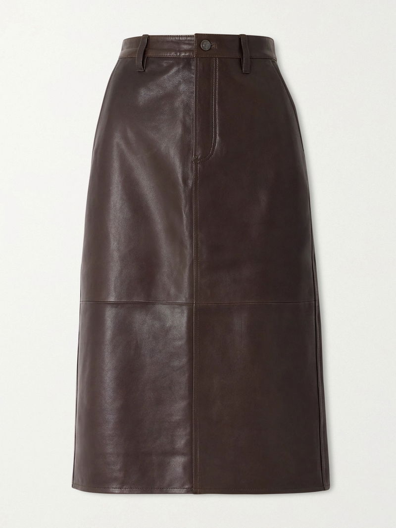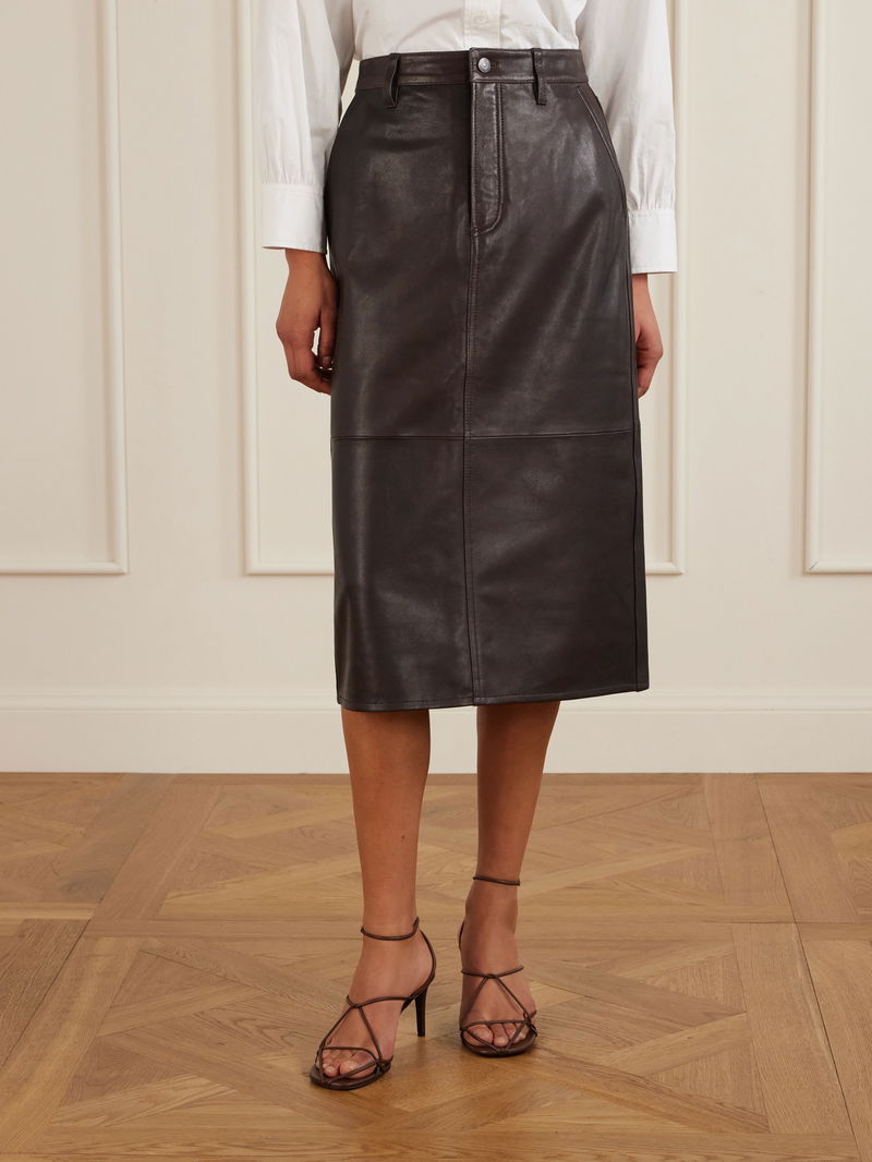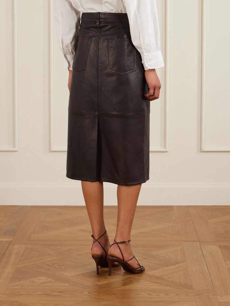 FRAME's polished midi skirt will never date. It's made from panels of smooth leather in an elegant pencil shape. Wear yours with everything from crisp shirts to knitwear.