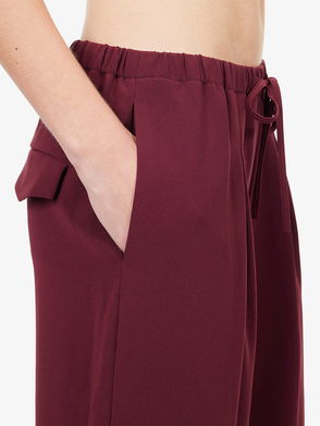 Wide-leg stretch polyester bonded satin trousers. · High-rise· Belt loops· Four-pocket styling· Cargo pockets at outseams.