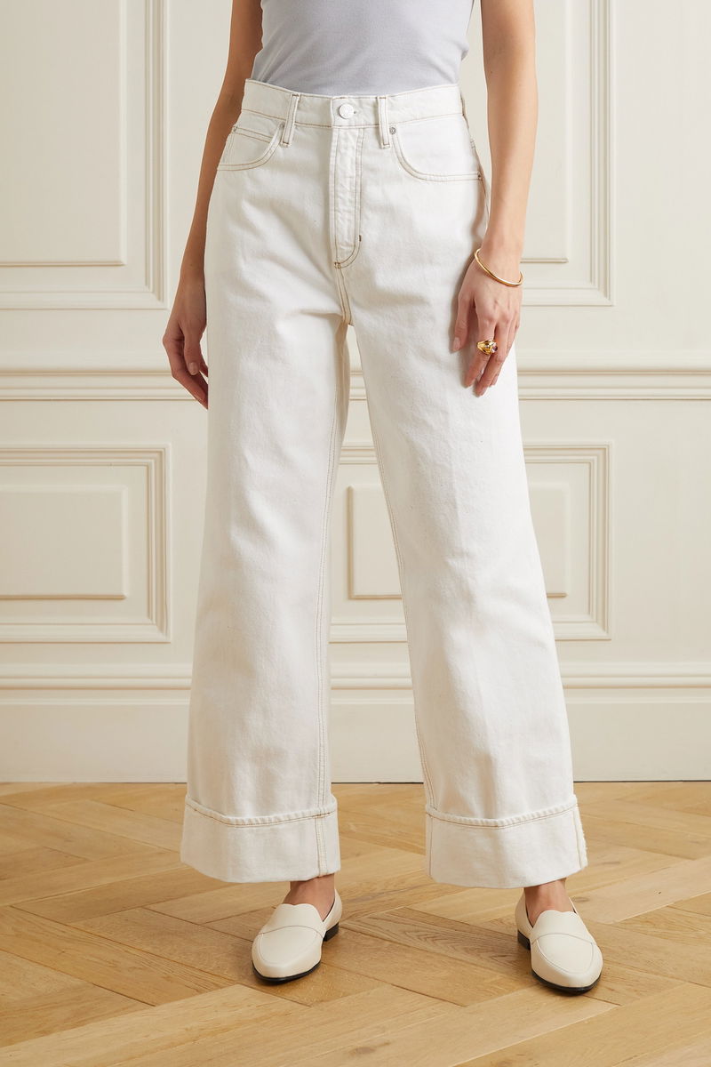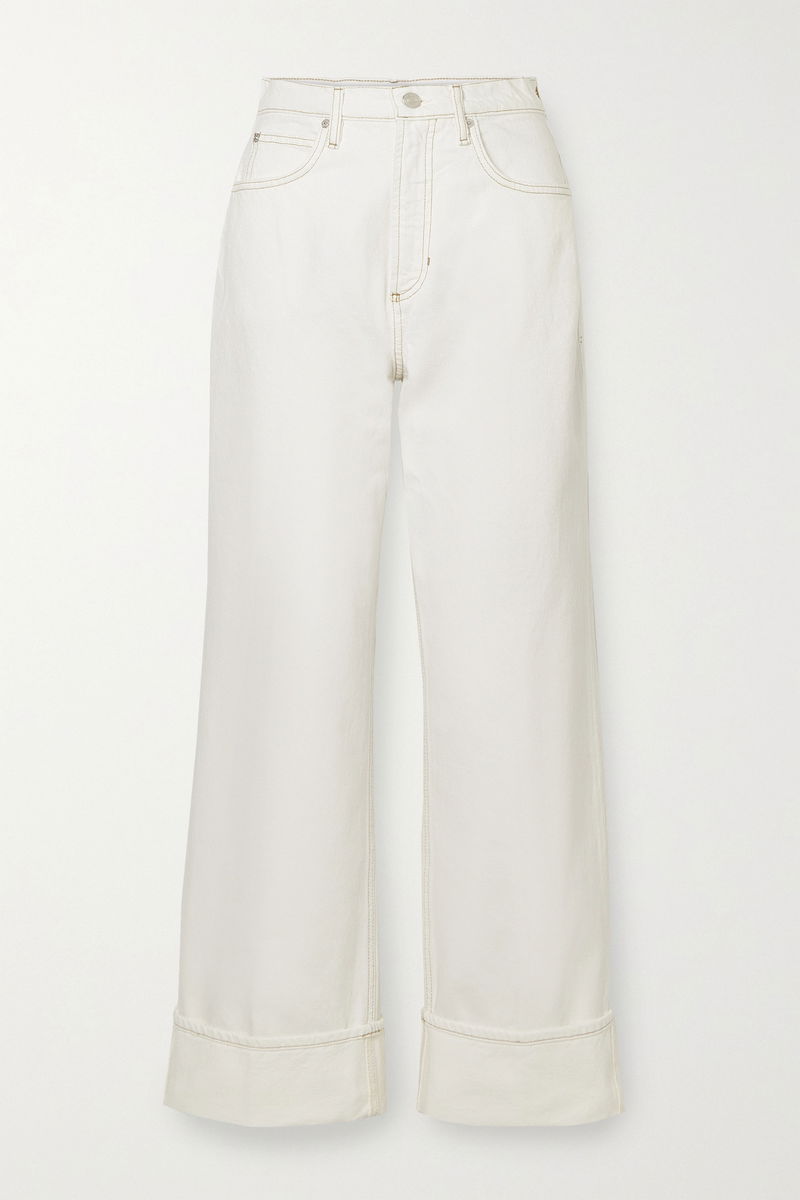 Wide-leg denim is a huge trend this season and FRAME's jeans have rolled hems to enhance the silhouette even more. They're cut from ecru denim that's rigid enough to hold its shape and have a high-rise waistband. The length is perfect for showing off statement sandals or ankle boots.