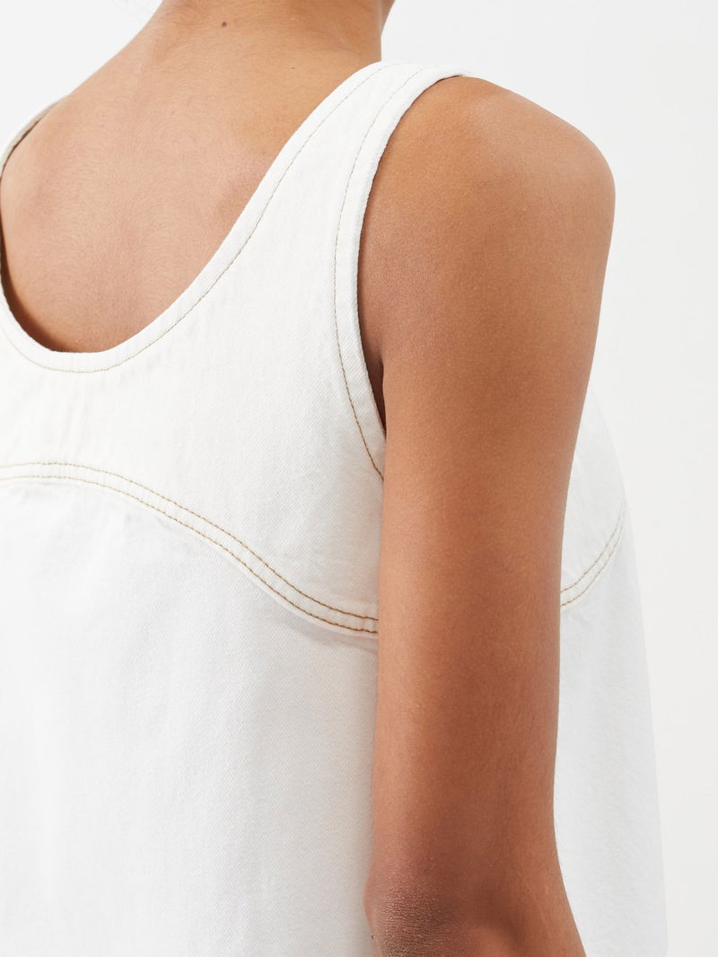 Inspired by minimalistic styles from the 1990s, FRAME's ivory mini dress is cut to a cropped silhouette from structured denim with topstitched accents.