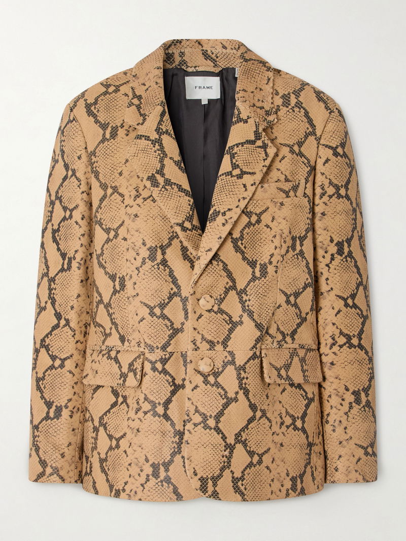 FRAME believes that dressing sharply shouldn't mean sacrificing personality. This blazer is made from precise laser-cut leather with a striking snake-effect finish. Take the relaxed, oversized profile as a styling cue.